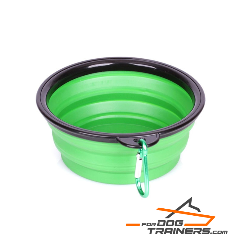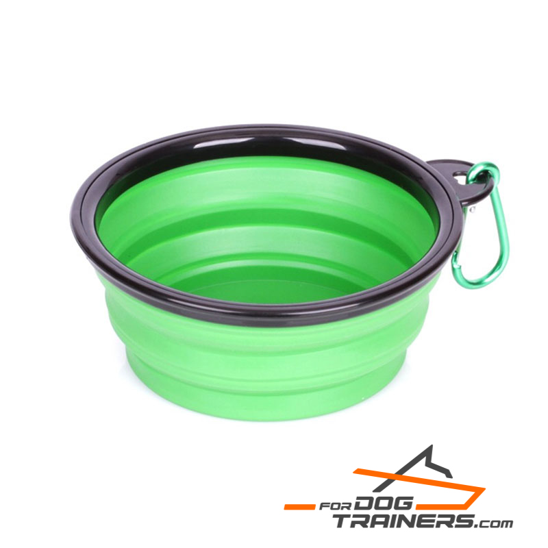 This dog food bowl is easy for storage and transportation. This is because it is lightweight and easy to carry about. The size of your dog is not a factor when considering this bowl because it can be collapsed into three sizes to suit your dog's body size. These sizes are: fully loaded, 180ml and 360ml. It is very convenient to use, as it comes with a spring hook that can be attached to other items. The material used, is very easy to clean and maintain.