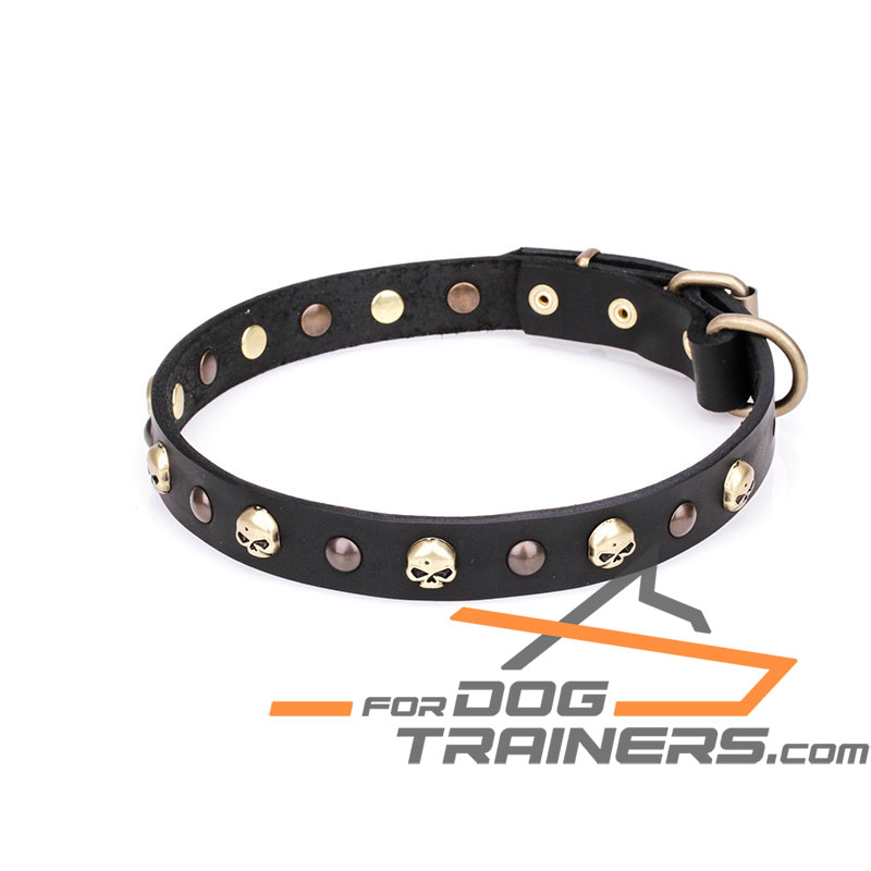 Decorated with Skulls and Studs Leather Dog Collar for Daily Walking