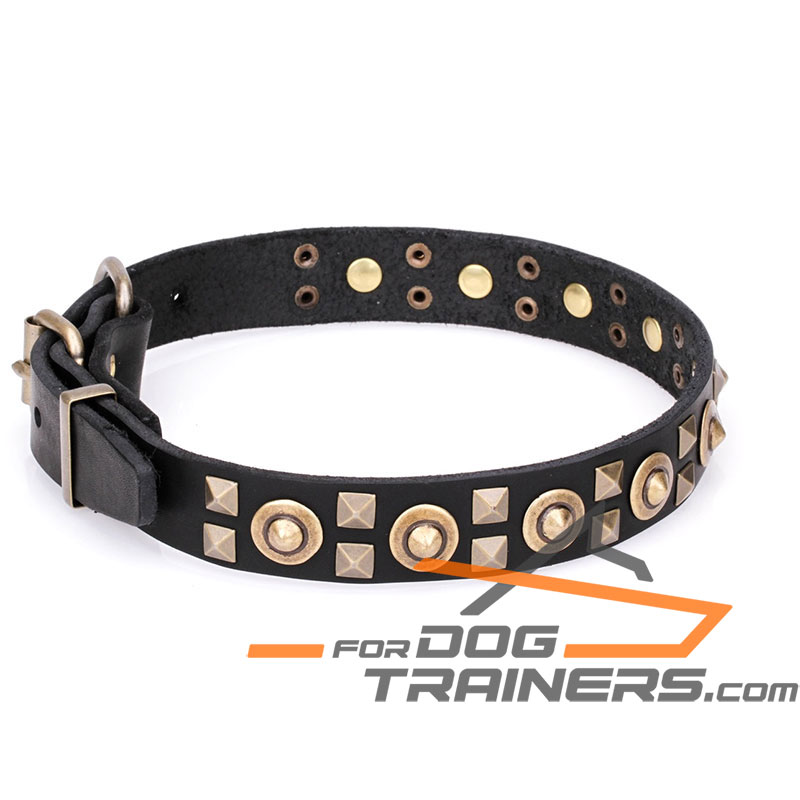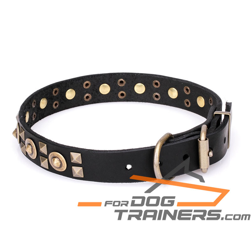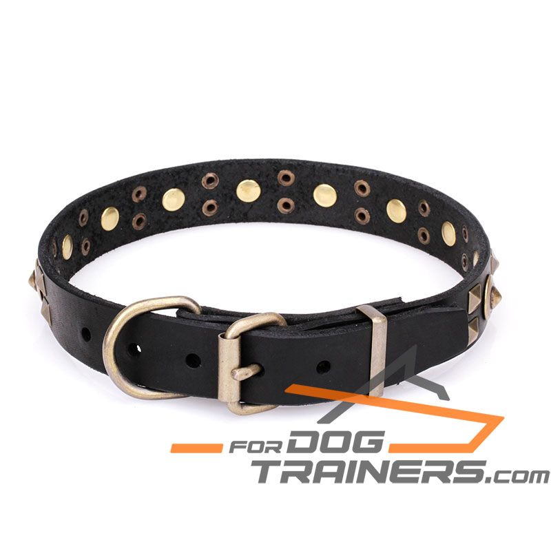 This trendy gear is made of high quality materials that are safe for your dog's health. If you are a happy owner of the strongest dog, you shouldn't worry about the reliability of the item. The collar is able to withstand even the greatest puller. Full grain natural leather, used for the creation of this dog collar, is famous for its long-lasting service and gentleness to the touch. Even if your pet wears the item for long hours, he will surely feel full comfort. No more rubbing, irritation or any other discomfort!