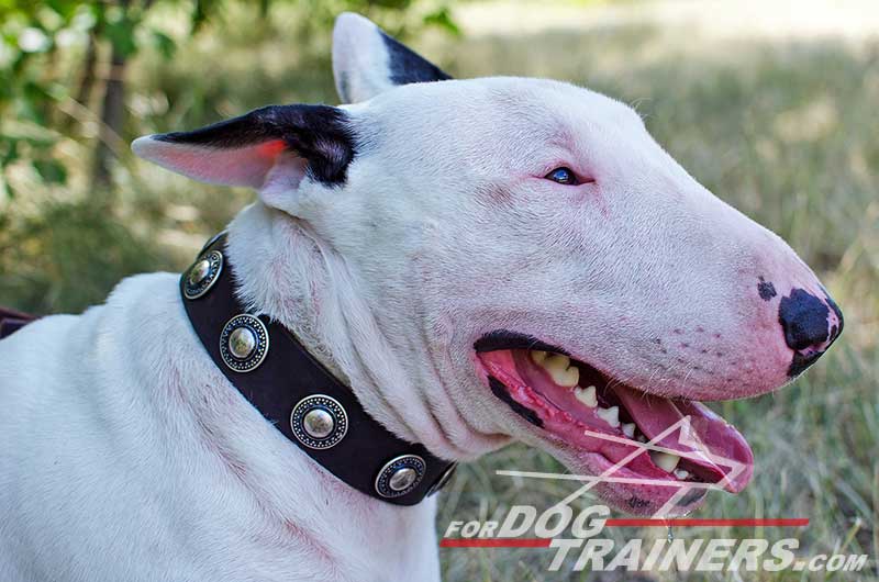 Decorated Leather Bull Terrier Collar for obedience training