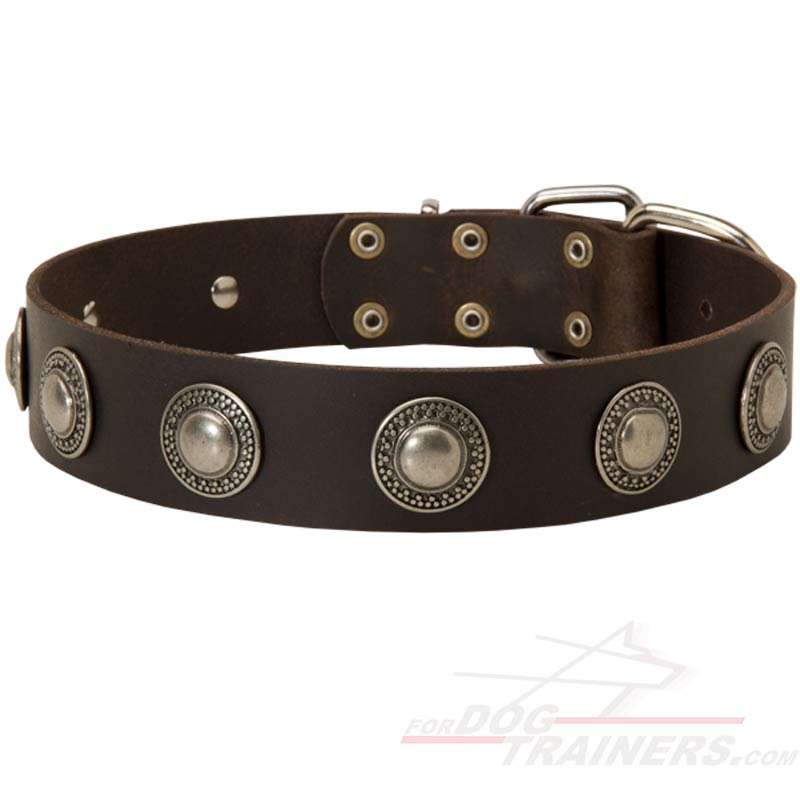 Do you want to buy High-quality and Super Stylish Leather Collar for your dog? Well, who doesn't? You have a chance to do it right now! This Amazing Leather Collar with conchos is practicable, durable, quality, glamourous...we can name more features of this Collar, but isn't it better to buy and see yourself? Your dog will be grateful, if you choose probably the best Collar in the world for him. Are you ready to get the world-class collar and make your dog the most beautiful representative of the breed? No more thinking! Buy now Marvellous Leather Collar for your pet!