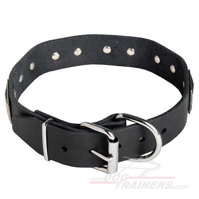 Leather Dog Collar with Nickel Decor for Walking in Style