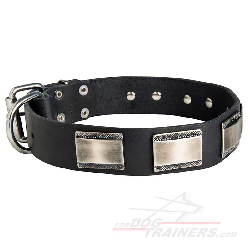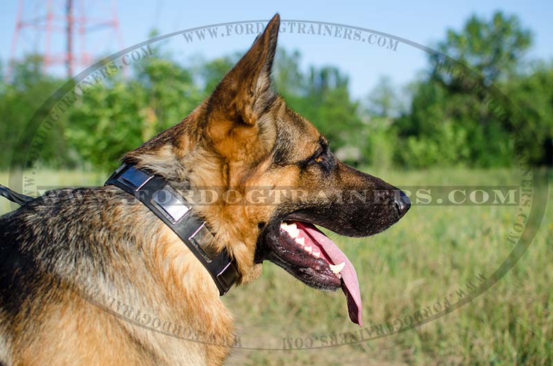 Plates Decorated Leather Dog Collar for German Shepherds