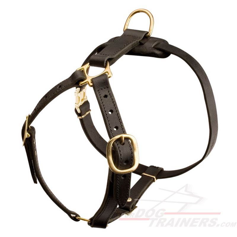 - It is extremely strong! Being made of 100% full grain genuine leather, this harness is a real treasure! It is extremely strong and flexible enough so to perfectly adjust to your dog’s body contour. As for the straps, they have a perfect width so to embrace your dog’s body snug and not to cut into the skin.