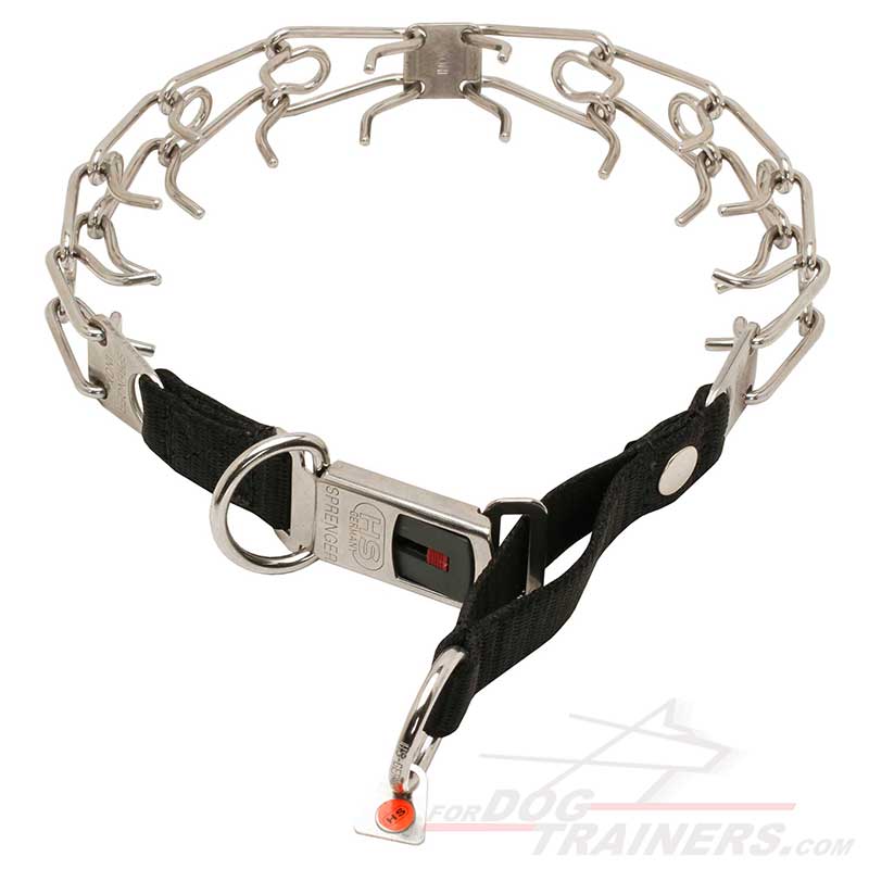 • Brand-new Design of Stainless Steel Pinch Prong Collar with Click Lock Buckle and Nylon Loop 1/8 inch (3.2 mm)