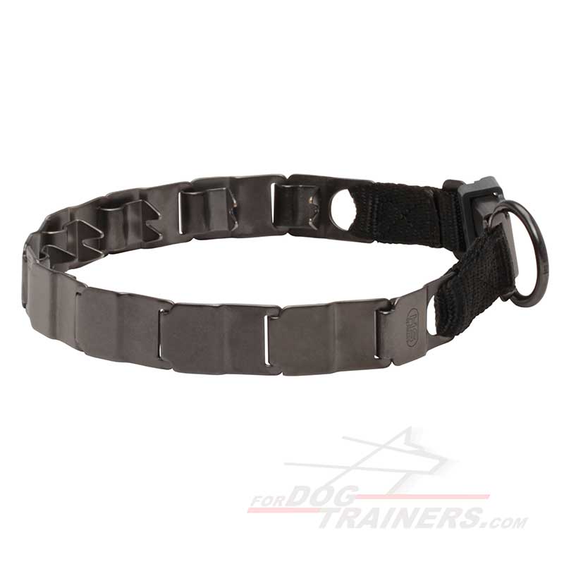 This neck tech sport pinch collar is designed of Matt Stainless Steel. The collar is equipped with click lock buckle which contains extra protector to prevent sudden releasing. This click lock buckle can withstand the load up to 440 lb (200 kg).