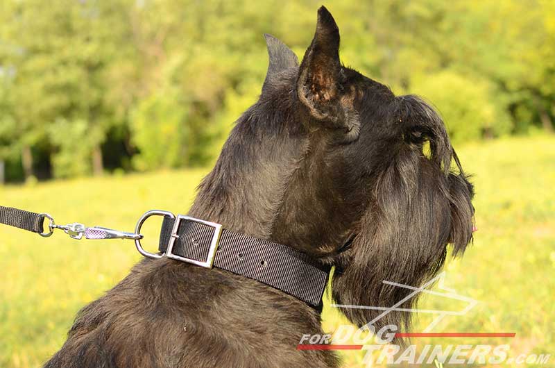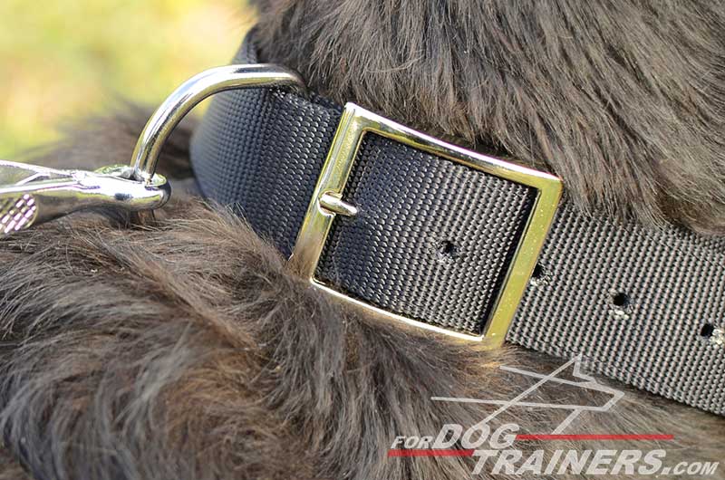 If you like simple design and excellent quality, this Nylon Dog Collar is perfect choice for you. The Collar may be put on your dog in any weather. It is a real godsend for owners of big-sized and very active breeds, because it's wide enough and irreplaceable for handling and walking. You have to see this Collar to appreciate it's quality!