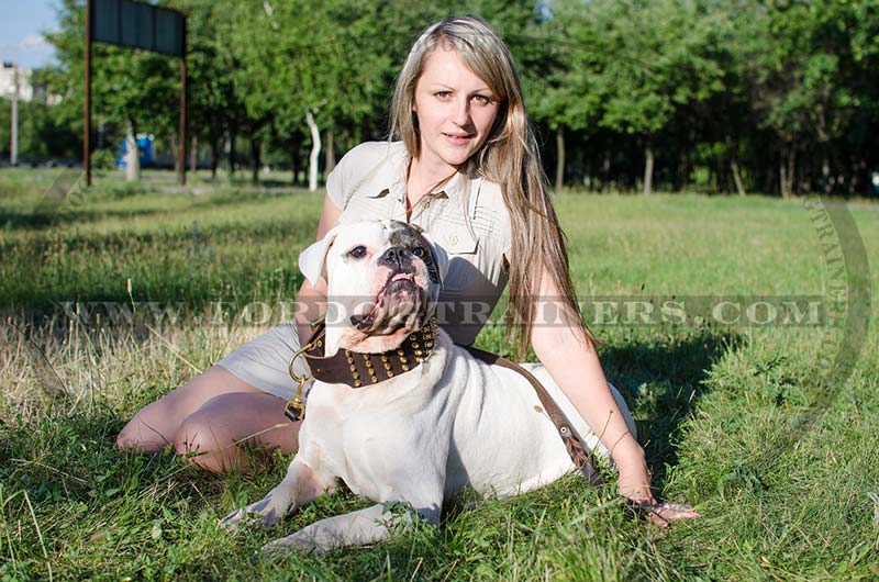 People liked gold at all times. Nowadays it's remain to be one of the most popular and valuable metal in the world. Can you measure your love to the dog in bars of gold? Of course, no! Your bond with the dog is priceless! However, you can make a present to your dog and show other people how much do you love him. This Wide Leather collar with gold-like spikes will stress upon your dog's unique style and beauty. He will appreciate this Wonderful Leather Collar and you will be proud of having the most fashionable dog in the neighbourhood!