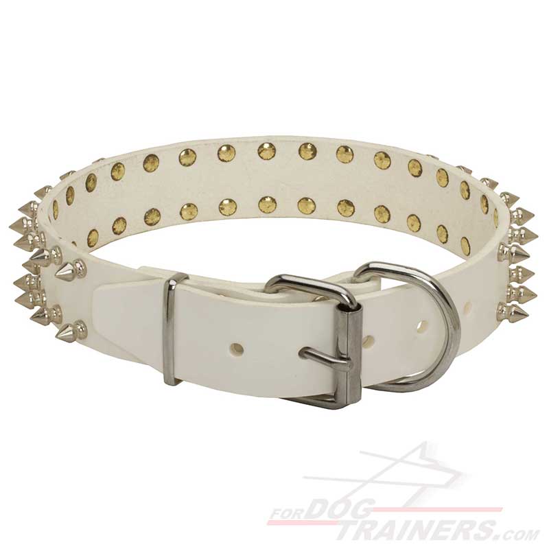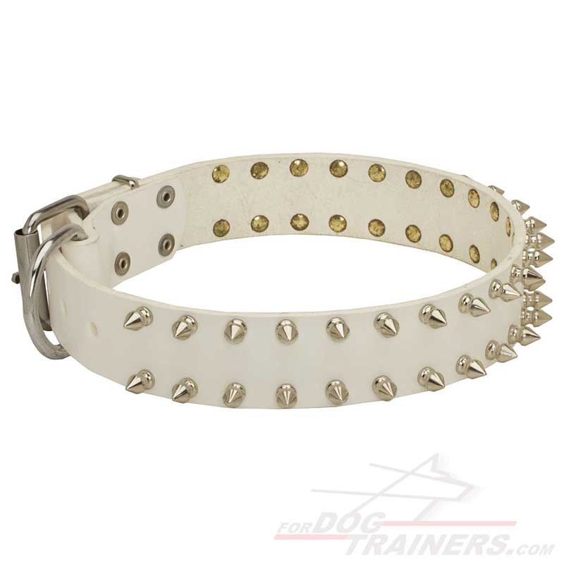 Order this White Leather Dog Collar with Spikes "White Rose" and let your pet look elegant no matter where you go!
