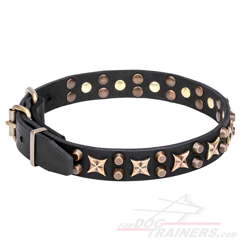 Have a chance to do it buying this Wonderful Decorated Dog Collar! Its amazing large stars will make your four-legged friend look magnificent. Wearing this dog item, your dog will surely impress people around and, maybe, a famous director will take notice of your gorgeous looking pet and invite him / her to shoot in his movie.
