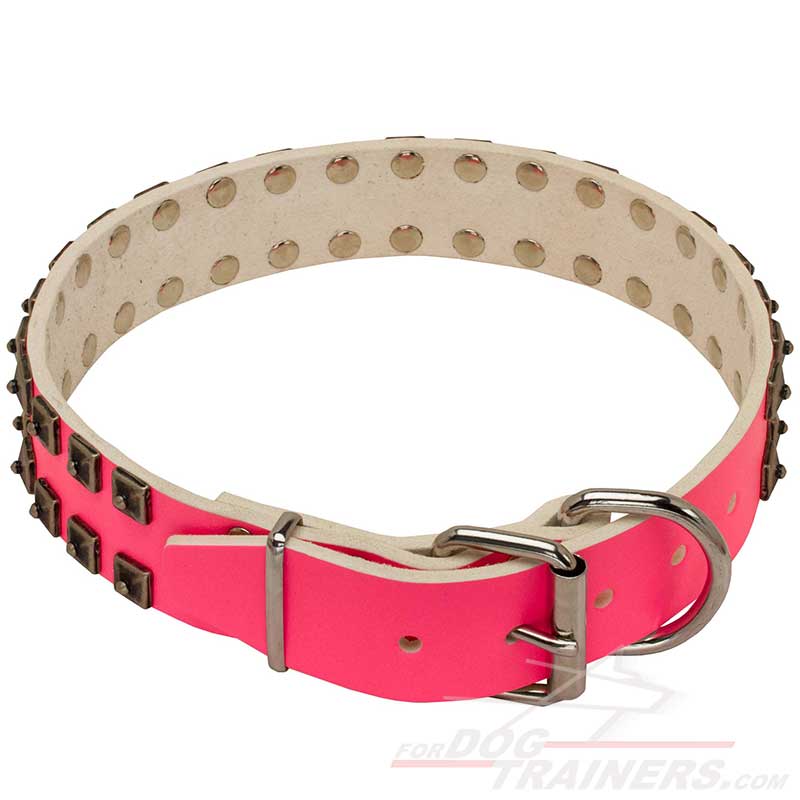 No doubt the most eye catching feature of this product is its bright pink color. When your pet will wear this Leather Collar, everybody will know that you aren’t afraid to choose audacious and fancy things for your favourite dog.