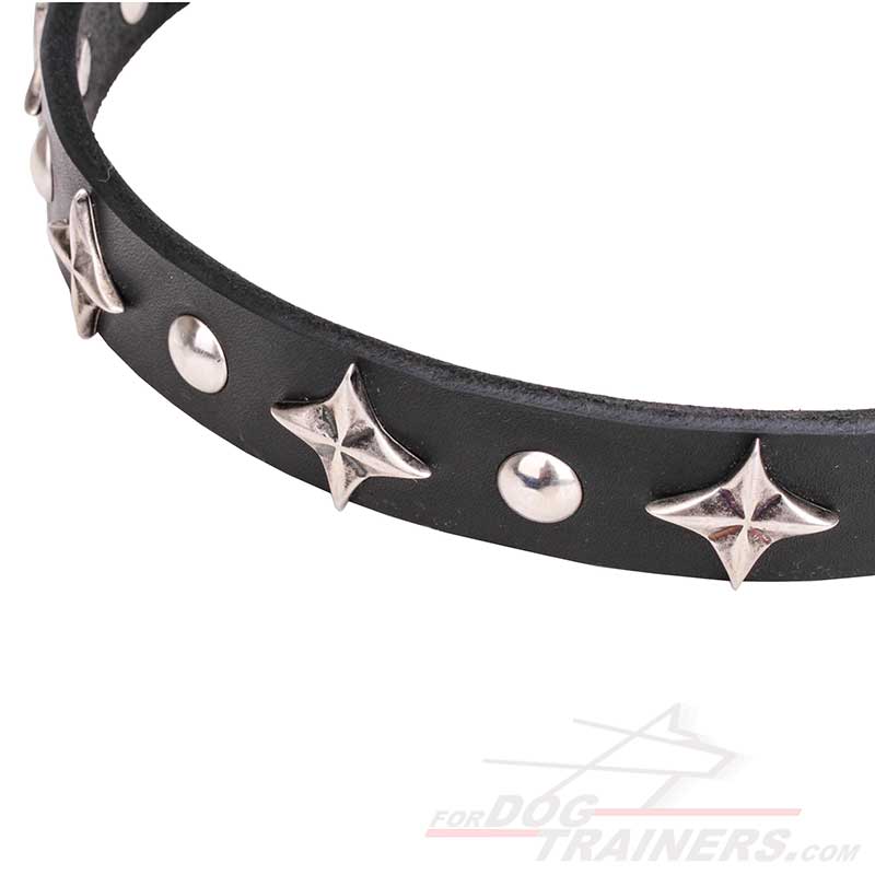 Fancy Design Leather Dog Collar with Shiny Large Stars and Half-Ball Studs