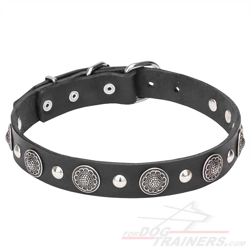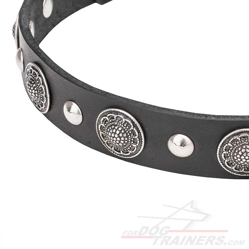 Designer Dog Collar with Shiny Rustproof Conchos and Studs
