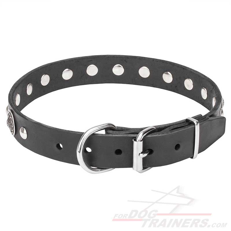 Decorated Dog Collar with Chrome Plated Buckle and D-Ring