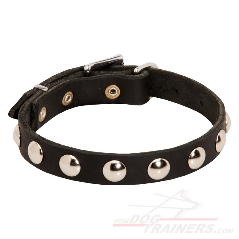 Amazing news for owners of French Bulldogs and other similar breeds! Delicate Leather Dog Collar with Half-Ball Nickel Studs is our brand new product. It is gorgeous collar with modest decoration so it is very suitable for everyday walking, basic training or special occasions.