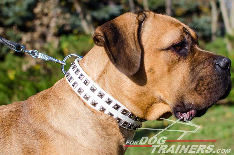 Cane Corso White Collar with Nickel Studs