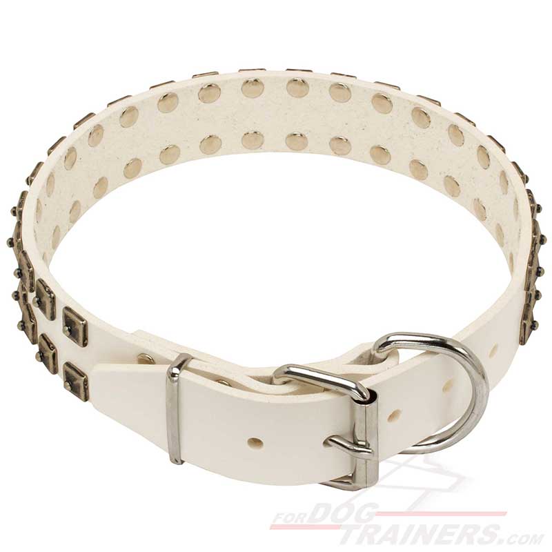 Designer White Leather Canine Collar for Walking and Training