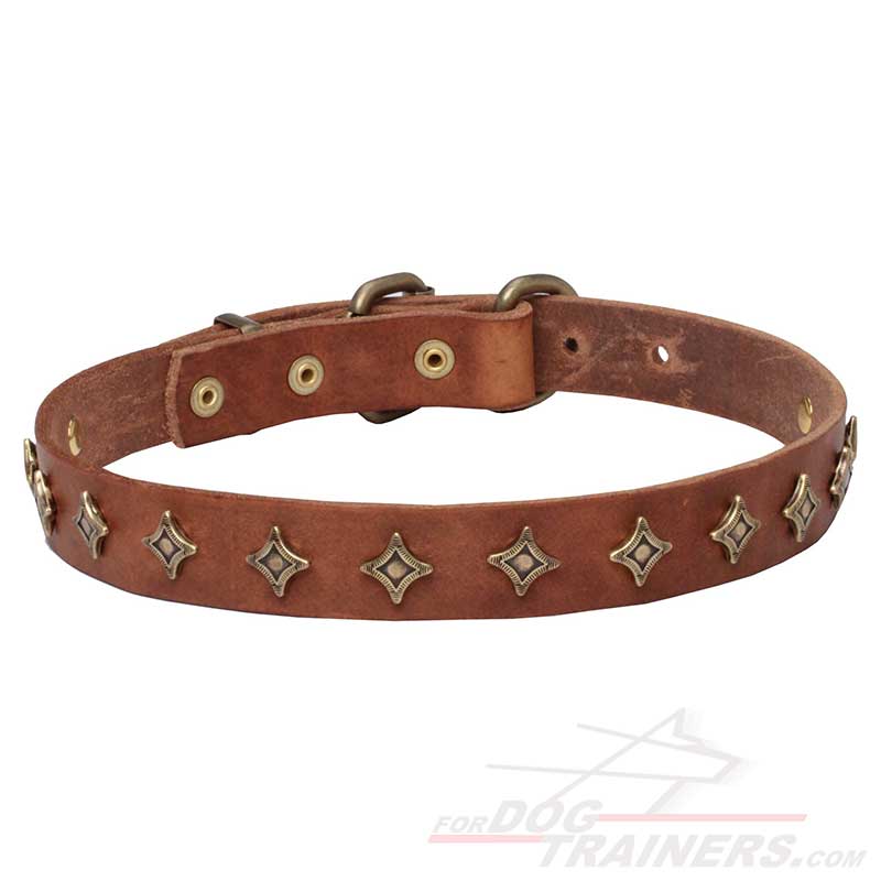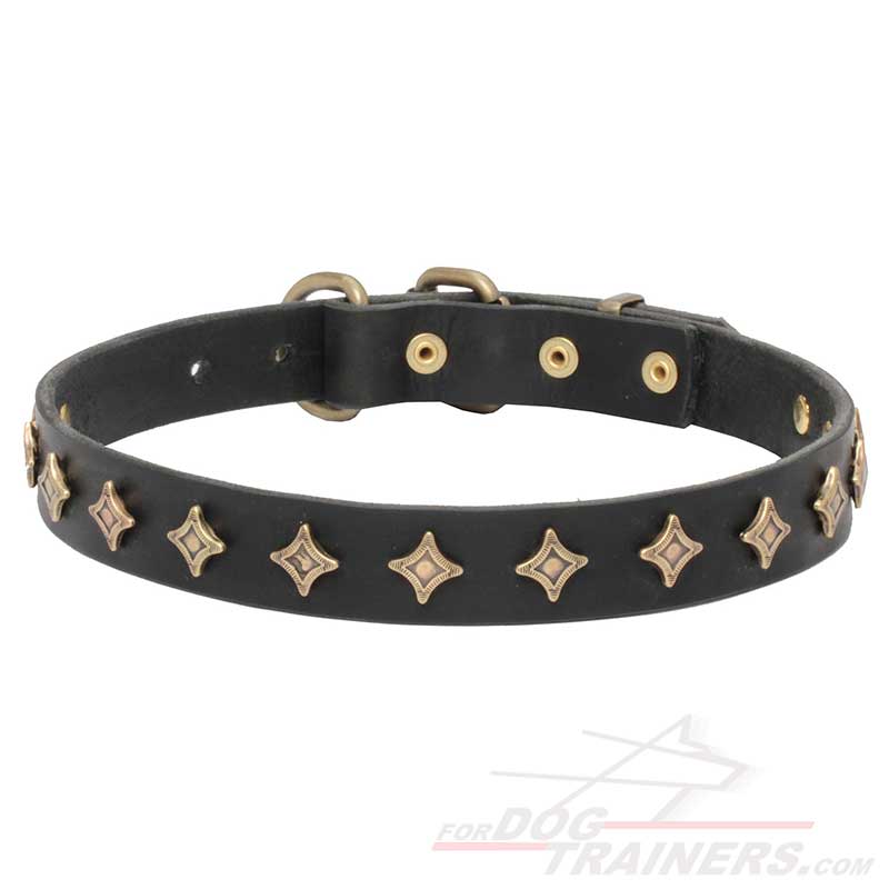 'Yellow Star' Fashionable Dog Collar with Old-Like Bronze Decoration